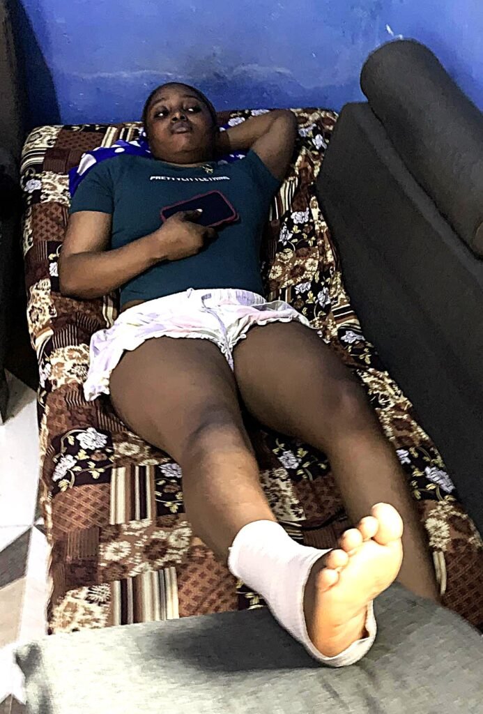 She sustained severe pain in her right ankle from the fall and is currently receiving medical care and trauma support. Fortunately, no other physical injuries were reported.